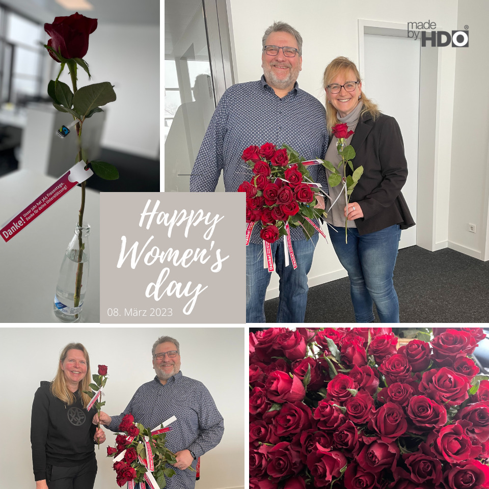 Traditionell werden von unserem Betriebsrat an diesem Tag als Dankeschön und Zeichen der Wertschätzung Rosen von der IG Metall an alle HDO-Mitarbeiterinnen verteilt. Als Unternehmen der Metallindustrie mit seinen “typisch technischen Männerberufen” verfügen wir über einen Frauenteil von immerhin 20% und liegen damit noch über dem Gesamtdurchschnitt der deutschen Industrie von 16,3%. Und auch unsere Geschäftsführung ist mit Frau Gundelach zu 33% mit Frauen besetzt.